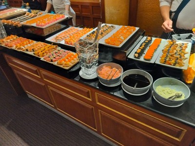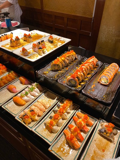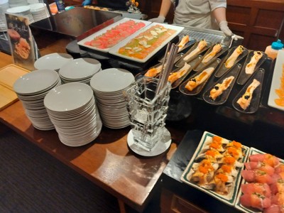 buffet มื้อเย็น ได้ voucher มาจาก Line@ ของ รร. ราคา 999฿ net ไม่ได้มาที่รร.นี้นานมากๆ ตัว รร. เก่าบรรยากาศร้านทึบ และมืด แต่พนง.ยังบริการดี รวดเร็ว อาหารหลากหลายดี มี soft drink น้ำอัดลมต่างๆ แต่ไม่มีน้ำเปล่า ต้องสั่งเพิ่ม - highlight ของที่นี่คือ FOIE GRAS SUSHI ไม่อั้น ตัวฟัวกราส์ ถือว่าเกรดดี ใช้ได้ เบิร์นไฟมาแบบกำลังดี ต้องรีบทานตอนร้อนๆ ให้ข้าวคำไม่ใหญ่มาก ไลน์ sushi ปลาดิบ ถือว่าดี -...อ่านต่อ