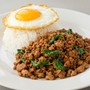 กะเพราหมูหรือไก่(สับ) ราดข้าว+ไข่ดาว
