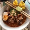 บะหมี่ร้านนี้เป็นบะหมี่เส้นแบนค่ะ หาทานได้ไม่ง่ายค่ะ อร่อยใช้ได้เลยค่ะ ต้มยำรสชาติกลมกล่อม ต้มจืดซดน้ำอร่อยคล่องคอค่ะ จัดว่าดีงามค่ะ กิมมิคคือเกี๊ยวปูกเป็นโบสถ์ทอดค่ะ จัดว่าน่ารักฟรุ้งฟริ้งเลยค่ะ เป็นอีกร้านที่แนะนำค่ะดูเพิ่มเติม