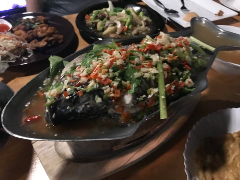กุ้งแม่น้ำเผากับน้ำจิ้มแซ่บๆ กุ้งสดตัวใหญ่เนื้อแน่นเด้งให้รู้ว่าสดจริง มีเมนูกุ้งหลากหลายทั้งกุ้งอบวุ้นเส้น กุ้งพันแซลม่อน กุ้งเทมปุระ หรือพวกเมนูปลาอย่างปลากระพงนึ่งมะนาวก็ตัวใหญ่อร่อยสมราคา โดยรวมชอบมากค่ะ แฟนชอบบรรยากาศส่วนตัวเราเองชอบอาหารรู้สึกคุ้มค่าราคาดีดูเพิ่มเติม