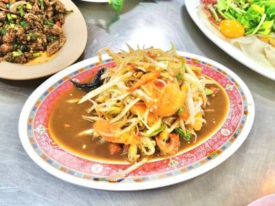 กินมา 10 ปีแล้ว ได้รีวิวสักที ถ้าปลาร้าในเลือดขาดยามกลางคืน นึกถึงแต่ร้านนี้ ชิมมาเกือบหมดทุกเมนูของร้าน ยืนยันว่าแซ่บทุกจาน 🌿ปากเป็ดทอด จิ้มจุ่มเนื้อน่องลาย+ผ้าขี้ริ้ว ตำโคราช ก้อยคั่วใส่เลือด ไส้อ่อนทอด คือ เมนูยืนพื้นที่สั่งซ้ำตลอด เมนูของทอดร้านนี้ทอดกรอบมาก สุกกำลังดี 🌿สำหรับจิ้มจุ่มถ้าต้องการให้รสเหมือนแจ่วฮ้อนทางอีสาน ขอน้ำจิ้มแบบขมเพิ่ม เอามามิกซ์เล็กน้อยกับน้ำจิ้มที่มาในชุด เติมลงใ...อ่านต่อ
