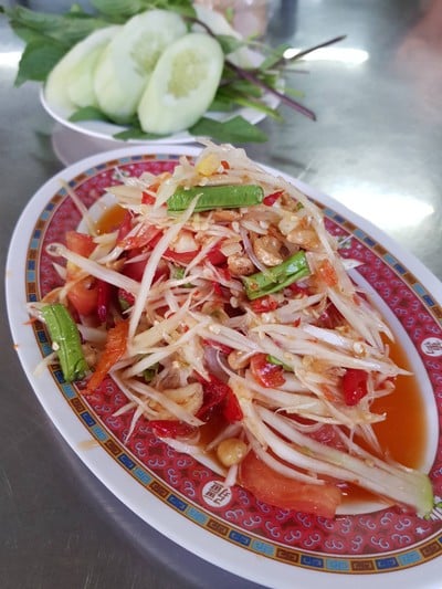 รสชาติส้มตำมีความอร่อยลงตัว จนถึงกับซิ๊ดซ๊าดบวกกับความเปรี้ยวจิ๊ดจ๊าดของมะนาว รวมตัวกันเป็นความแซ่บ ร้านนี้คนเยอะมากยิ่งช่วงค่ำๆที่จอดรถยนต์จะลำบากหน่อย ถ้าเป็นมอเตอไซส์จอดหน้าร้านได้เลย ร้านนี้ราคาไม่แพงมากไปทานบ่อยมากคะ บางช่วงไม่มีโต๊ะนั่งเลย ร้านเป็นตัวตึกอาคารพานิชย์ชั้นเดียวอยุ่ตรงสามแยกพูลผล มีที่นั่งเยอะมากหลาย โต๊ะ เหมาะสำหรับมาทานแบบครอบครัว หรือมาเป็นหมู่คณะก็ได้นะคะ ร้านนี้ส้มตำปูม้...อ่านต่อ