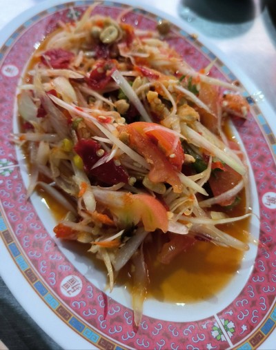 ไปก็บ่อย ไม่ค่อยได้กินปลาดุกย่าง ส่วนใหญ่พอจะสั่ง ทางร้านบอกว่าต้องรอนาน เลยต้องสั่งปลาดุกทอด วันนี้โชคดี เขาย่างทิ้งไว้แล้ว เลยได้กินปลาดุกย่าง แต่ก็นั่นแหละ พอกินปุ๊บ ก็มีข้อติเลย เนื้อค่อนข้างขาว ปลาสด แต่น้ำที่ใช้ทา ยังไม่ซึมเข้าไปถึงตัวเนื้อเลย ทำให้เนื้อค่อนข้างจืด และหนังส่วนหาง ก็ยังไม่กรอบดี ขาดอรรถรสไปนิดหน่อย เพราะปลาดุกย่าง หนังภายนอกจะต้องกรอบ เคี้ยวได้เลย ส่วนอาหารอย่างอื่นของเขา...อ่านต่อ