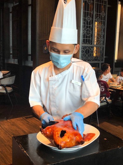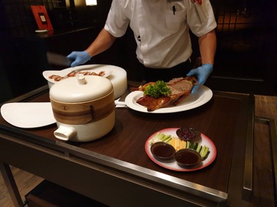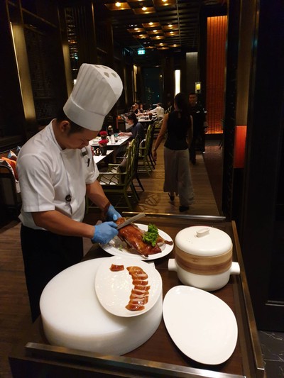 วันนี้มากินเป็ดปักกิ่ง บนภัตตาคาร ชั้น 32 ของโรงแรมมาริออท สุรวงศ์ ดีงามครับ เลาะหนังกรอบๆ ออกมาให้ได้ทานแบบฮ่องกง ห่อกับผักต่างๆ ตักซีอิ้วหวานราด แล้วรับประทานทันที แบบกรอบๆ เลย อร่อย และ Luxury มากมายเลยครับ เชฟจะเอาเป็ดทั้งตัว มาเลาะหนังโชว์เลย ได้การบริการเป็นอย่างดี ดุจลูกค้าคนสำคัญ ดีงามครับ ชอบๆ มันดูพิเศษจริงๆ ทานอร่อย เพราะการดูแลเป็นพิเศษเลยครับดูเพิ่มเติม