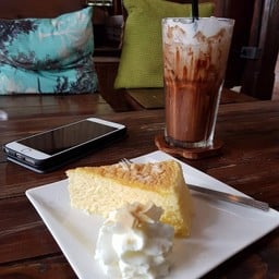 กาแฟร้านนี้ค่อนข้างต่างจากร้านอื่นนิดหน่อย คือ ร้านจะให้เราเลือกระดับการคั่วของเม็ดกาแฟได้ แต่ถ้าเราไม่บอกร้านก็จะชงมาตามสูตรของร้านเอง กาแฟร้านนี้ก็เคยมาทานบ่อยอยู่ ร้านนี้มีเมนูแนะนำ คือ กาแฟเผือก (ส่วนตัวชอบ แต่ต้องบอกหวานน้อย ) และเค้กอัลมอนด์ ซึ่งทำจากอัลมอนด์ 100% ไม่ผสมแป้ง อันนี้ลืมถ่าย ส่วนชีสเค้กอันนี้นุ่มอร่อยดีดูเพิ่มเติม
