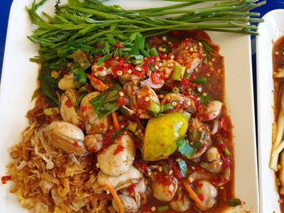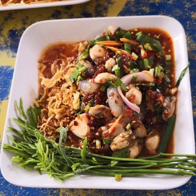 ร้านยำชื่อดังในโซเชียลจังหวัดจันทบุรี อยู่ใกล้ทะเลไม่ไกลจากกรุงเทพฯ รอไม่นานก็ได้กิน สั่งยำมาหลายอย่างลองดูอร่อยมากก โดยเฉพาะยำจัดหนักจัดหนักจริงๆกั้งสดมากกก แต่ที่สำคัญยำแต่ละยำให้เครื่องเยอะมากกินแทบไม่หมด ขอบอกว่าคุ้มมากจริงๆให้เครื่องให้อาหารทะเลแบบไม่กั๊กเลยจริงๆ ราคายำก็ไม่แพงหารกันก็ถือว่าคุ้มมาก และเจ้าของร้านเป็นกันเองมากน๊อตโตะให้ถ่ายรูปได้ด้วย ถือว่าคุ้มจริงๆที่ได้มากินถึงที่นี่ไม่ผิ...อ่านต่อ
