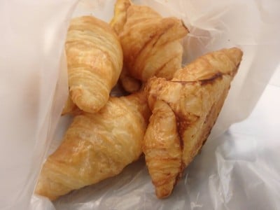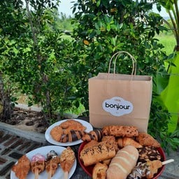 เดินอยู่ชั้นใต้ดินที่หัวหินมาร์เก็ตวิลเลจ หาซื้อของกิน ได้กลิ่นขนมอบหอมๆ จากร้านบองชู bonjour ทำให้ต้องหยุดแวะ ขนมถูกอบวางเรียงไว้เยอะละลานตา น่ากินไปหมด เลือกคัสตาร์ดข้าวโพด 2 ชิ้น + มินิครัวซองต์รสธรรมดา 6 ชิ้น + มินิครัวซองต์รสช็อกโกแล็ต 6 ชิ้น จ่ายไป 105 บาท รสชาติดี ใหม่ กลิ่นหอม กินได้เรื่อยๆ เพลินๆ ราคาไม่แพงดูเพิ่มเติม
