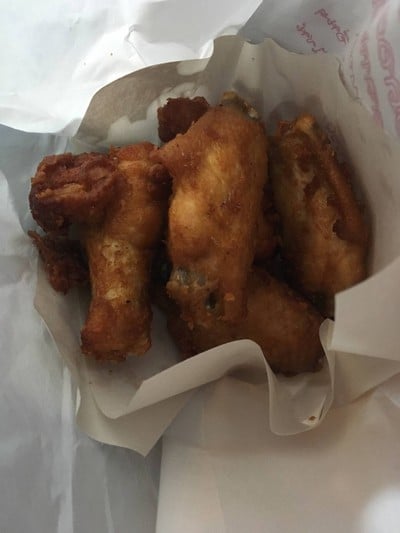 ชื่อว่าร้านไก่ทอด 5 บาท แต่ความจริงไม่ใช่ 5 บาททุกชิ้นนะจ๊ะ ก่อนจะหยิบลองถามคนขายดูก่อนว่าแบบปีก/น่อง ขายยังไง ราคากี่บาท เพราะราคาไม่เท่ากัน เราเลือกหยิบทั้งปีก/น่อง ทอดมาได้ร้อนๆดีค่ะ รสชาติก็โอเคนะแบบไก่ทอดแหละ แต่แอบเห็นว่าน้ำมันก็จะดำหน่อยๆ และคนขายบางครั้งก็ใช้มือหยิบไก่เลย ก็เลยรู้สึกไม่โอเคตรงความสะอาดเท่าไรดูเพิ่มเติม