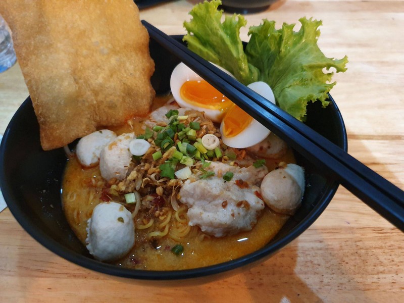 พิกัด : ร้านเล็กๆด้านซ้ายในเวิ้งลานปูน ฝั่งตรงข้ามม.เทคโนฯ บางมด หากขับรถมาหน้าร้านจอดได้ 2 คัน และมีที่จอดตรงเต้นท์กลางได้อีกประมาณ 10 คัน ร้าน : ร้านติดแอร์ขนาด 1 หน้าห้อง ดูสะอาดสะอ้าน แบ่งเป็นสัดส่วน โซนทำก๋วยเตี๋ยวก็จะอยู่นอกห้องแอร์ เพราะฉะนั้นกลิ่น ควันก็จะไม่รบกวนลูกค้าในร้าน อาหาร : ก๋วยเตี๋ยวเป็นหลัก แต่มีเมนูข้าวอีก 3 เมนู (หมู/ไก่อบ, ข้าวผัดกะปิปลากรอบ) ส่วนก๋วยเตี๋ยวก็เลือกตามอัธ...อ่านต่อ