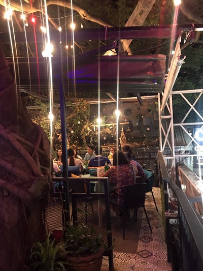 100% ของรีวิวบอกว่าร้านนี้เหมาะกับ ปาร์ตี้ เที่ยวร้านอาหาร นั่งดื่ม บนชั้น 2 ใต้ร่มไม้ใหญ่. มีโซนกลางแจ้งใต้ต้นไม้และโซนอินดอร์ โซนกลางแจ้งใต้ต้นไม้ตกแต่งสวย บรรยากาศดูโรแมนติกดี น่านั่ง ร้านมีเมนูอาหารไทย ฝรั่ง เครื่องดื่มพวกค้อกเทล เบียร์ เหล้า เครื่องดื่มพวกค้อกเทลจัดว่าใช้ได้ เฟรนช์ฟรายทอดมาร้อนๆ กินกับซอส 3 อย่าง กรอบอร่อย บริการดี รวดเร็ว เจ้าของ/พนักงานยินดีถ่ายรูปให้เต็มที่ หลายช๊อตมากๆดูเพิ่มเติม