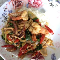 กระเพรารวมทะเลราดข้าว