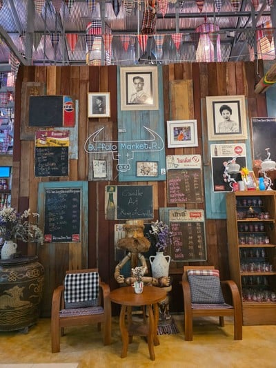 100% ของรีวิวบอกว่าร้านนี้เหมาะกับ เพื่อนฝูงBuffalo Coffee @ Buffalo Market Ratchaburi จุดเช็คอินแห่งใหม่ล่าสุด พิกัด บ้านตลาดควาย จอมบึง ราชบุรี . ร้านกาแฟตกแต่งแนววินเทจหน่อยๆ มีทั้งเมนูกาแฟและเครื่องดื่มอื่นๆ . กาแฟใช้ได้ ลองลาเต้เย็น ดื่มง่าย . ร้านเป็นแบบโอเพ่นแอร์ บรรยากาศดี มุมถ่ายรูปเยอะ ที่จอดรถก็เยอะ แวะมาได้ไม่ผิดหวัง . 📍Buffalo Market Ratchaburi (จากแยกปากบึง มุ่งหน้าบ้านตลาดควาย เจอป้ายบ้านตลาดควาย เลี้ยวซ้ายตรงซอยถัดจากป...อ่านต่อ