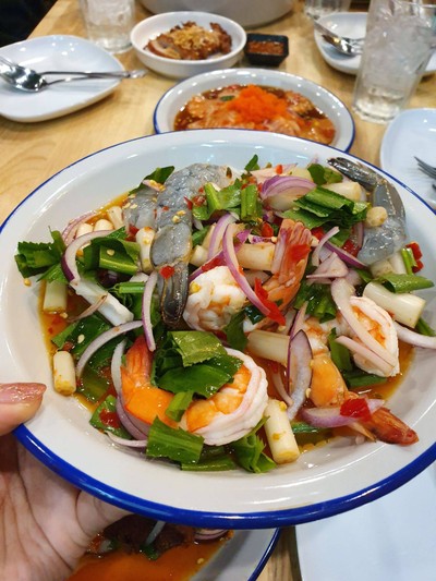 ร้านอาหารใน ซึ่งเป็นร้านยำรสอาหารนั้นแซ่บมากๆได้รสจัดจ้านดี วันนี้ก็สั่งเมนูมาตรฐานไก่ทอดยำมาม่า และยำกุ้งสด บอกเลยว่าน้ำยำแต่ละจานนั้นรสชาติดีครับ ปริมาณอาหารเทียบกับราคาผมว่าคุ้มค่าคือส่วนตัวไม่ใช่คนที่ต้องจ่ายถูกหรืออะไรเพียงแต่ว่าถ้าจ่ายแพงแล้วขอให้ร้านอย่างงบปริมาณซึ่งร้านนี้ให้ปริมาณเกินราคา ก็เลยคิดว่าไม่รู้จะงกดาวไปทำไมจัดไปเลย 5 ดาวดูเพิ่มเติม