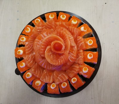 Salmon Cake Republic 🎂 เค้กแซลมอนรีพับบลิค เค้กแซลมอนรีพับบลิค เราใช้วัตถุดิบเกรดพรีเมี่ยม แซลมอนสดๆนำเข้าตรงจากนอร์เวย์ เชฟของเรานำมารังสรรค์ ให้ออกมาเป็นเค้กสุดพิเศษ ด้านล่างเป็นแคลิฟอร์เนีย โรล 30 คำ ตกแต่งด้วย แซลมอนคำโตวางเรียงเป็นพัด และแซลมอนช่อดอกไม้ โรยด้วยไข่ปลาแซลมอน เพื่อคนพิเศษ🎉 *ใช้เวลาทำ 30 นาที