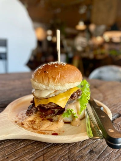 22% ของรีวิวบอกว่าร้านนี้เหมาะกับ คู่รักสำหรับผมเป็นคนไม่ค่อยชอบทานแฮมเบอร์เกอร์สักเท่าไหร่ถือว่าร้านนี้อร่อยแล้วทำให้อยากไปทานอีก ไปกินร้านนี้สองครั้งครับความรู้สึกคืออาหารอย่างอื่นนอกจากแฮมเบอร์เกอร์ไม่อร่อยเลย 🦑กะเพราหมึกไข่ (คนขายบอกไข่แน่นมาก) แต่หมึกที่มามีไข่อยู่นิดเดียว แถมรสชาติเค็มมาก 🐮กะเพราเนื้อ เอาเนื้อจากแฮมเบอร์เกอร์มาผัดกะเพราเลยไม่มีการทำให้เนื้อแตกมาเป็นก้อนแบบนั้นเลยรสชาติไม่อร่อยครับ 🍝สปาเกตตีคาโบนาร่ารสชาต...อ่านต่อ