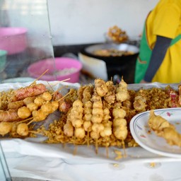 ลูกชิ้นทอดเจ๊เบญ (สี่แยกโพธิ์ล้มสะเดียง) เปิด10.00น ลูกชิ้นทอดออกแนวโบราณ แป้งกรอบๆ ทอดไฟอ่อนจนพองโต อัดไฟตอนท้ายให้กรอบนาน กินกับน้ำจิ้มสองแบบ แบบไม่เผ็ดมาก เป็นน้ำจิ้มแดงผสมสัปปะรด และน้ำจิ้มเผ็ดน้ำจิ้มมะขามเปียกกับพริกแห้งทอด ผักเคียงพร้อม แตงกวาลูกเล็กหั่นแช่น้ำแข็ง ผักชีเป็นต้น ซื้อเกิน300ส่งฟรีเขตเทศบาลดูเพิ่มเติม