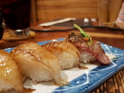 21% ของรีวิวบอกว่าร้านนี้เหมาะกับ หิวโซถ้าเทียบกับร้านอื่นในราคาเดียวกัน คือ 799 บาท ราคานี้ ไม่รวมเครื่องดื่มนะครับ เครื่องดื่มเป็น ชาเขียวเย็น/ร้อน รีฟิล แก้วละ 50 บาท ส่วนน้ำเปล่า 1 ขวด หรือน้ำอัดลม จำหน่ายในราคา 35 บาท!! ถ้าพูดเรื่องอาหาร ที่โดดเด่นคือ ซาซิมิแซลมอนและทูน่าที่ช่วงจานแรกจานสอง หั่นมาค่อนข้างหนา และค่อยๆ บางลงเรื่อยๆในจานหลังๆ ครับ รสชาติซาซิมิแซลมอน ไม่เลี่ยนถือว่าโอเคครับ ส่วนซูชิที่โดดเด่น คือ เอนกาวะ ครีบป...อ่านต่อ