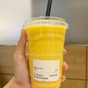 แก้วนี้สีเหลืองโทนส้มมาเลย อันนี้สมชื่อ sorbet คือเปรี้ยวแบบสดชื่น เสาวรสมะม่วงสับปะรดเด่นเลย เห็นว่าผสมมะพร้าวด้วยแต่ไม่ได้รู้สึกถึงมะพร้าวเท่าอย่างอื่น มีกากใยสับปะรดมาด้วยเล็กน้อย รู้สึก healthy ดีค่ะ