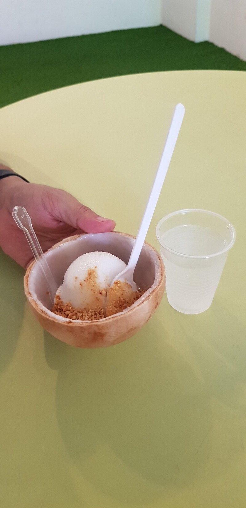 คือไปเที่ยว USS ที่เกา Sentosa กันแล้วคือวันนั้นเป็นวันที่อากาศแบบร้อนมากๆๆ ส่งนตัวแล้วเราเป็นคนไม่ชอบกินผลิตภัณฑ์จากมะพร้าวเลย แต่ว่าวันนั้นคือแบบไม่ไหวแล้ว ต้องหาไอศกรีมเย็นๆกินดับร้อน มาเจอร้านนี้ เราก็เอ้อ กินก็กิน 5555 กิมมิคมันอยู่ตรงไอศกรีมกะลามะพร้าวที่บ้านเราเนี่ย หากินได้ง่ายมากก เราว่ารสชาติก็พอใช้ได้ กินได้ อร่อยดี แต่ก็ไม่ได้ว้าวขนาดนั้น แต่ถ้าใครอยากคลายร้อน ก็ลองชิมกันดูได้จ้าดูเพิ่มเติม