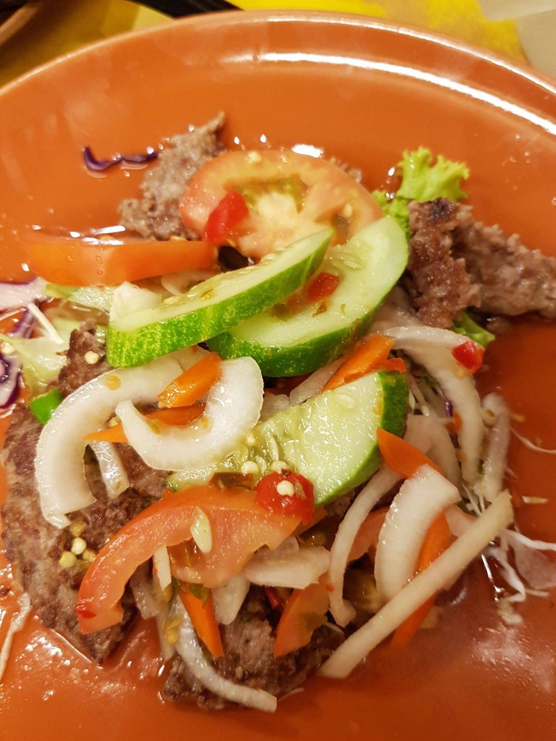 ร้านอยู่ตรงข้ามเพาะช่าง มีการปรุงโชว์ที่หน้าร้านเลยหล่ะ นึกว่ามีแต่สเต็ก พอดูเมนู โอ๊ะ!!! มีหลากหลายมาก ทั้งข้าว สเต๊ก สลัด และยำ ได้ทั้งสายหมูและสายเนื้อ ข้าวเนื้อทอดไส้กรอกไข่ดาวใส่เบคอน อันนี้าำหรับคนชอบหลากหลาย อาหารเยอะและข้าวน้อยดี สลัดหมูทอด อันนี้หมูบางและชิ้นเล็กไปหน่อย ยำเนื้อแฮมเบอร์เกอร์ รสชาติดีทีเดียว ใส่เครื่องยำครบมาพร้อนเนื้อเบอเกอร์ ทำให้ครั้งหน้าต้องลองแฮมเบอร์เกอร์สะหน่อย เก...อ่านต่อ