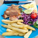 ** สเต็กไก่ (เด็ก) จานละ 49.- บาท เสิร์ฟมาพร้อมกับสลัดผัก เฟรนช์ฟรายส์และขนมปังกระเทียม ตัวเนื้อไก่อร่อย นุ่มมาก เฟรนช์ฟรายส์ชิ้นใหญ่ให้เยอะดี ส่วนสลัดผัก ผักสด กรอบ อร่อยเหมือนกันคะ