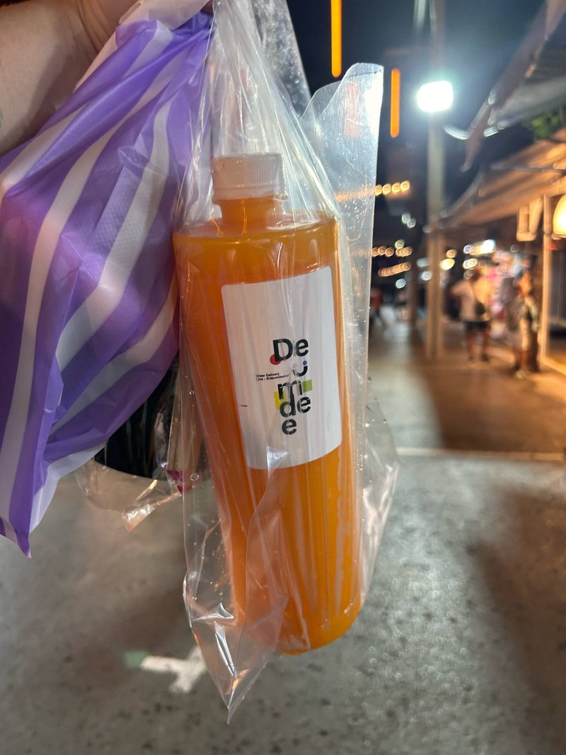 100% ของรีวิวบอกว่าร้านนี้เหมาะกับ เดลิเวอรีDeumdee ร้านน้ำส้มในตลาดอินดี้จตุจักร ขายสุดสัปดาห์ตั้งแต่เวลาหนึ่งทุ่มจนถึงสี่ทุ่ม วันนี้บรรยากาศในตลาดคนเยอะมากเลยทำให้หลายร้านขายดีซึ่งร้านนี้ก็เป็นหนึ่งในนั้น ที่ร้านมีเมนูน้ำส้มขวดเล็ก 45 บาทขวดใหญ่ 99 บาท ได้น้ำส้มขวดสุดท้าย เป็นขวดใหญ่ มาดื่มแบบจุใจ ได้ปริมาณเยอะมาก น้ำส้มหอมกลิ่นส้ม หวานกำลังดี ไม่แสบคอ ใส่ในน้ำแข็ง ทานแล้วสดชื่น สีสวยน่าทาน ใครชอบทานน้ำส้มสดห้ามพลาด #RainySeason20...อ่านต่อ