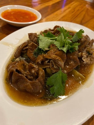 👉 ร้านตั้งอยู่แถวๆรูปปั้นมังกรกลางน้ำ (อุทยานสวรรค์) 👉 ร้านกว้างขวาง สะอาด โต๊ะนั่งสบาย 👉 ที่จอดรถค่อนข้างเยอะ แต่มีเพียงข้างถนนทั้งสองฝั่งเท่านั้น มีบริการโบกรถให้ 👉 ราคาอาหารตกคนละ 150-200 บาทไทย ถือว่ากลางๆตามปริมาณและคุณภาพ (ผมไปกัน 2 คน สั่งกับข้าวมา 4 อย่าง) 👉 รสชาติอาหารไม่ต้องพูดถึง สั่งมาทั้ง 4 อย่างผมให้คะแนนเต็มถึง 3 อย่าง 5️⃣หัวไชโป๊ะผัดไข่ ตัวเส้นกรุบกรอบกลิ่นไข่หอมฟุ้...อ่านต่อ