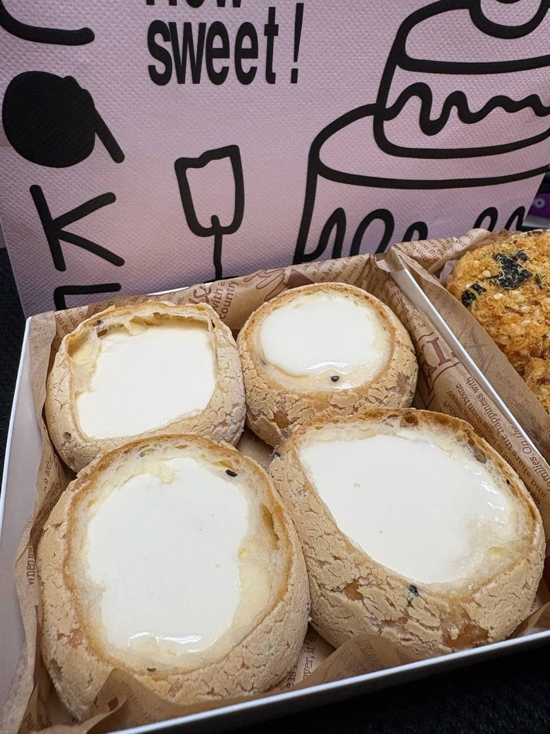 100% ของรีวิวบอกว่าร้านนี้เหมาะกับ เดลิเวอรีเป็นร้านลับๆ แถวห้วยขวาง ที่ไม่มีหน้าร้าน ต้องสั่งผ่านแอป E Gets เท่านั้น เมนูเด่นๆของเขาจะมี โมจิพุดดิ้ง และ เค้กไก่หยอง ผมเลยสั่งมาลองทั้งสองตัวเลย - โมจิพุดดิ้ง (5/5) 1 กล่องได้มา 4 ชิ้นใหญ่ๆ ตัวโมจิเหนียวหนึบกำลังดีส่วนพุดดิ้งเนียนนุ่มไม่หวานเกินไปมีกลิ่นหอมอ่อนๆ ทานแล้วละมุนอร่อยมากครับ - เค้กไก่หยอง (5/5) 1 กล่องได้มา 4 ชิ้นใหญ่ๆ กลิ่นไก่หยองหอมครับใส่มาเยอะแน่นมาก เค้กหวานน้อยนุ่มมาก...อ่านต่อ
