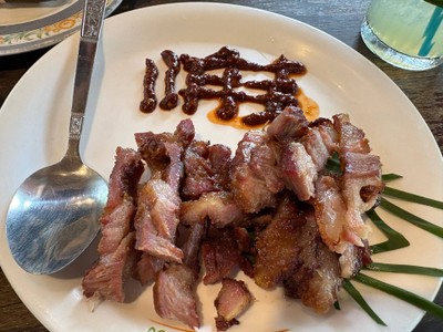 เป็นร้านไก่ย่างที่ขายอาหารอีสานร่วมด้วยครับ ร้านเป็นแบบ Open air แต่บรรยากาศดี ไม่ร้อน พัดลมเยอะมากครับ พนักงานเยอะมาก มีปุ่มตามโต๊ะให้กดเรียกพนักงาน บริการดีครับ - ไก่ย่างครึ่งตัว (95.-) ไก่ย่างจะเป็นแบบแห้งๆครับ ไม่ใช่ชุ่มฉ่ำแบบที่เคยกิน เครื่องที่หมักกับไก่รสชาติดีเลยครับ แต่โดยส่วนตัวผมว่ามันแห้งหน่อย กินลำบาก ตัวน้ำจิ้มให้มาสองแบบ น้ำจิ้มสีดำ ไม่เผ็ด อีกอันไม่แน่ใจว่าแจ่วบองไหม แต่ไม่ได...อ่านต่อ