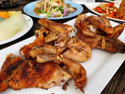 ไก่ย่างวิเชียรร้านประจำมาไม่ทันครับ ก็เลยลองร้านนี้ ก็ไม่ผิดหวังนะครับผมหรือว่าเป็นการเปิดทางเลือกใหม่ เข้าร้านมาไม่ต้องรอคิวด้วยครับวันนี้ พอดีมาช่วงบ่ายแล้ว นั่งโต๊ะแล้วก็ดูรายการอาหาร จดลงกระดาษส่งให้พนักงานไป ไม่นานนักก็ทยอยมาเสิร์ฟครับผม "ไก่ย่างวิเชียรบุรี" สั่งมาแบบ 1 ตัวเลยครับเหลือเดี๋ยวห่อกลับครับไม่มีปัญหา ไก่ย่างมาได้ดีหอมไม่แห้งมากเอาว่าน่องนี่ยังโอเคอยู่เลย น้ำจิ้มมีให้ที่โต๊ะผมว...อ่านต่อ
