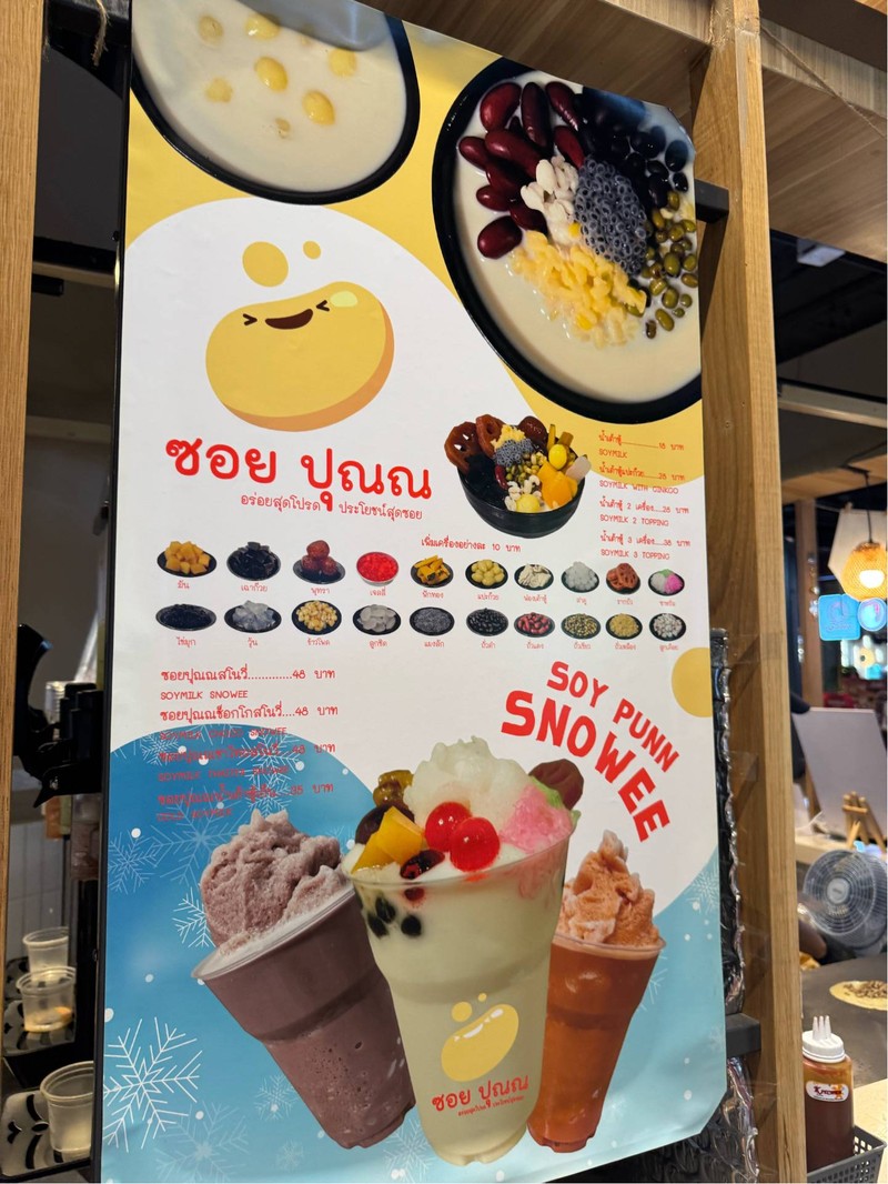 ร้านซอย ปุณณ เป็นร้านขายน้ำเต้าหู้ที่มีเครื่อง มีรสชาติให้เลือกหลากหลาย มีทั้งแบบเย็นและสเลอปี้ ราคาไม่แพง พนักงานขายบริการดี มีให้ชิมก่อนด้วย แนะนำเมนูดีมาก 🧡ซอยปุณณ สโนวี่ รสชาไทย (48฿) + เครื่อง 1 อย่าง (10฿) รสชาไทยหวานน้อยอยู่แล้ว แต่ก็สามารถผสมน้ำเต้าหู้ธรรมดาได้ด้วย ก็จะหวานน้อยกว่าเดิมไปอีก อร่อยดี รสนัวๆ รสเต้าหู้ชัด น้ำแข็งเป็นเกล็ดๆ กำลังดี #RainySeason2025 #ThaiteaSPLดูเพิ่มเติม