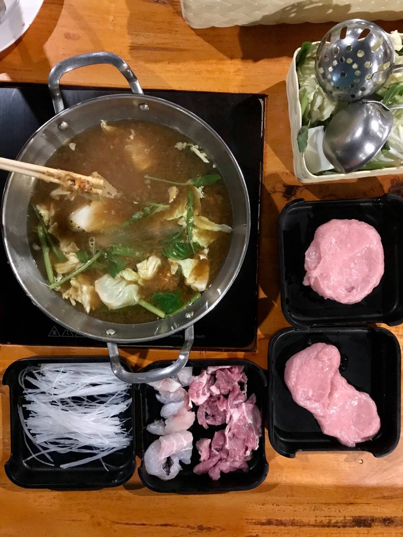 ในชุดมี เนื้อสัตว์ ผัก วุ้นเส้น น้ำแจ่ว