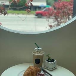 ร้านคาเฟ่เล็กๆริมถนน จอดรถได้บริเวณหน้าร้าน ทางร้านมีที่นั่งในร้าน แอร์เย็นฉ่ำ เอาท์ดอร์ก็มีที่นั่ง ราคาไม่แรงมาก ลาเต้เย็นแก้วละ 60 บาท กลิ่นหอม รสละมุน ครัวซองต์ ชิ่นละ 70 บาท หอมเนย เทกเจอร์ดี แป้งเหนียวนุ่มดี ด้านบนกรอบเบาๆดูเพิ่มเติม