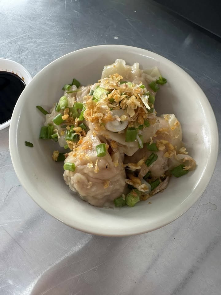 เกี๊ยวคำโตๆ กับไส้หมูสับชิ้นใหญ่หมักด้วยเครื่องเทศอย่างดี อาหารทานเล่น ที่อร่อยแบบจัดเต็ม