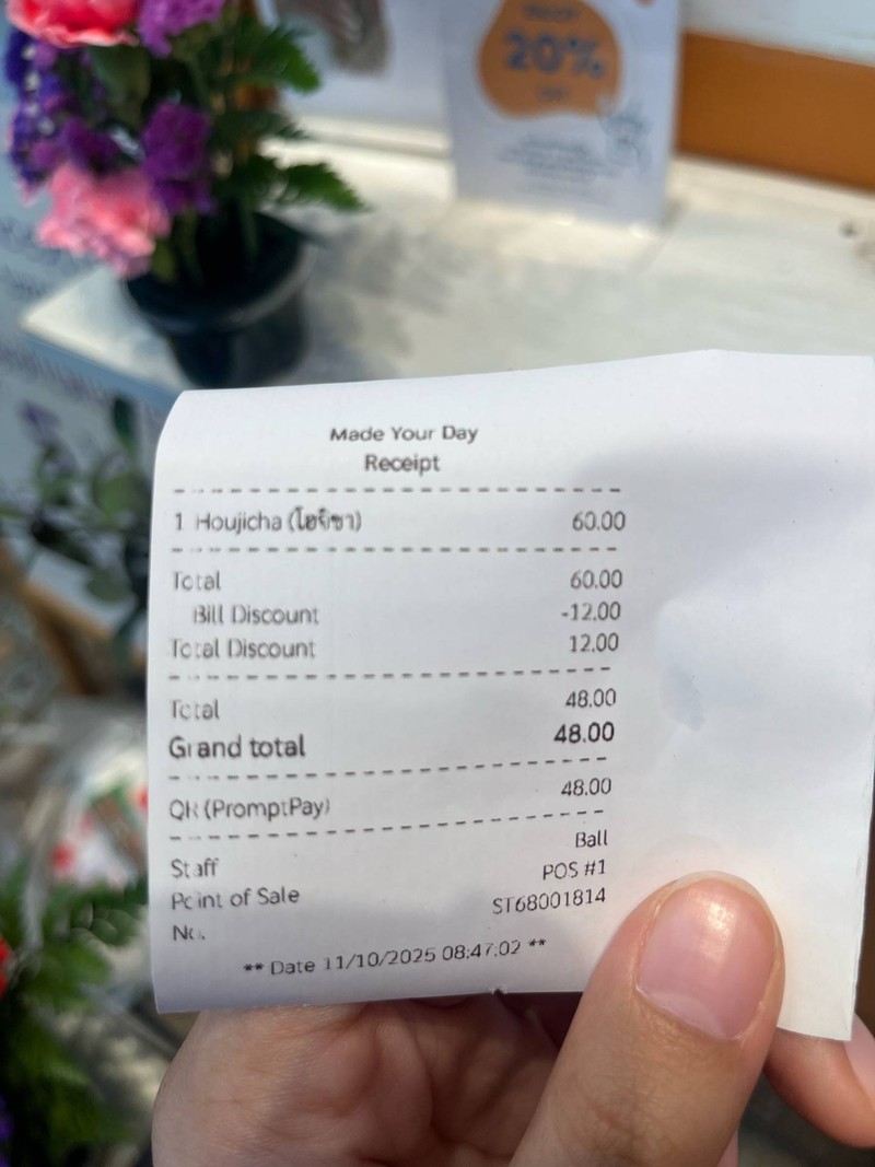 100% ของรีวิวบอกว่าร้านนี้เหมาะกับ ประหยัด!ตั้งใจจะเดินซื้อดอกไม้ก็เดินไปเรื่อย ๆ จนเจอร้านนี้ เห็นมี stand ฟีลคาเฟ่อยู่ เลยยืนดูได้ความว่าร้าน Made Your Day เป็นส่วนนึงของ Cupid Bloom & Co Flowers Space ก็คือเป็นคาเฟ่ย่อยในร้านดอกไม้ที่เมื่อซื้อดอกไม้จะลดเครื่องดื่ม 20% ค่ะ 📌ปากคลองตลาด เข้าไปในร้านดอกไม้ ไปซื้อดอกไม้มา เริ่มต้นดอกละ 5 บาทซื้อมา 4 ดอก = 20 บาท 🌷🌷🌷🌷 ห่อพลาสติกให้ด้วย🫧 เอาบิลใบเสร็จมาใช้แลกส่วนลด 20% กับทางร้านได้...อ่านต่อ