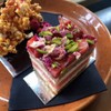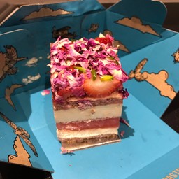 เค้กแตงโมชื่อดังย้ำว่าดังมาก คือที่ร้านทำเค้กอันนี้เตรียมไว้เยอะเพราะขายดี เป็นเลเยอร์ของ อัลมอลด์คล้ายๆเมอแรง ครีมราสเบอรี่ แตงโม โรยด้วยกุหลาบแห้งและถั่วพิตาชิโอ กลิ่นหอมดึ มีเอกลักษณ์ รสออกแนวสดชื่น แต่เราว่ายังไม่ได้ว้าวขนาดต้องมารอคิวซื้อดูเพิ่มเติม