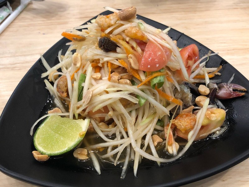ยำไก่ย่าง - ไก่ย่างเนื้อนุ่มหนังกรอบ ให้มาสมราคา รสชาติเปรี้ยวหวานกำลังดีไม่เผ็ดมาก ผักที่มากับยำมีมะเขือเทศ คื่นฉ่าย หอมใหญ่ และแครอทขูด สำหรับเราผ่านนะจานนี้ ส้มตำไทยไข่เค็ม - มะละกอกรอบสด ไข่เค็มรสชาติดี ส่วนตัวรู้สึกว่าหวานจัดไปหน่อย นอกนั้นโอเค ราคา 60 บาท บรรยากาศร้านสะอาดสงบ แอร์เย็นจนหนาวสั่น รีบกินรีบกลับเลยจ้า ทนความหนาวไม่ไหว คราวหน้าจะเตรียมเสื้อและเพื่อนไป มื้อนี้กินคนเดียว สั่ง...อ่านต่อ