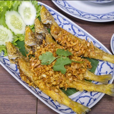 ปลาทรายทอดขมิ้น(Deep Fish snapper with fish sauce)