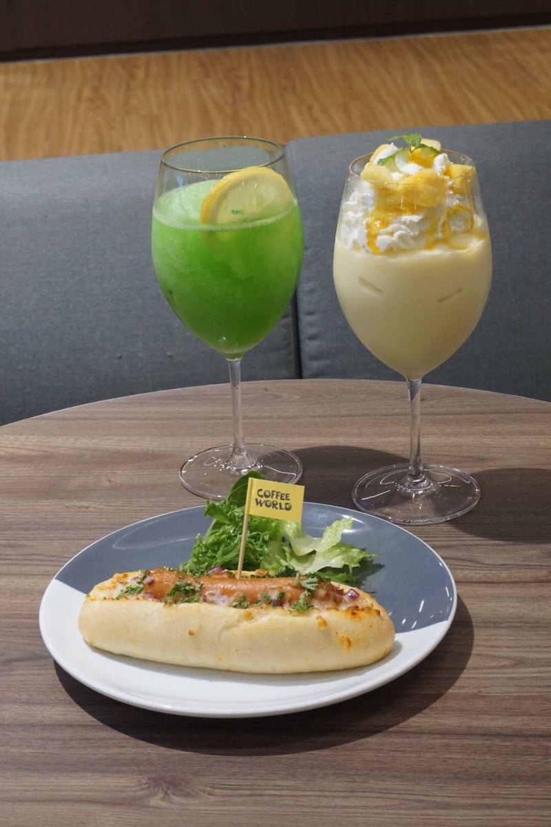 Coffee world สาขาเซ็นทรัลเวิลด์เปิดแล้ว ชั้น 5 หน้า Isetan มาลองเมนูใหม่มีเฉพาะแค่เซ็นทรัลเวิลด์ ชอบเมนูปั่น 2 แก้วนี้มาก - Mango Yoghurt (130 บาท) มะม่วงปั่นดีงาม ชอบที่มีเนื้อมะม่วงหนึบๆด้วย - Lemon Mint (120 บาท) เปรี้ยวๆหวานๆ สดชื่นดี - ส่วนของคาวคือ sausage and cheese roll (155 บาท) อบใหม่ๆ ชีสยืดเลย ชอบเมนูใหม่สาขานี้นะดูเพิ่มเติม