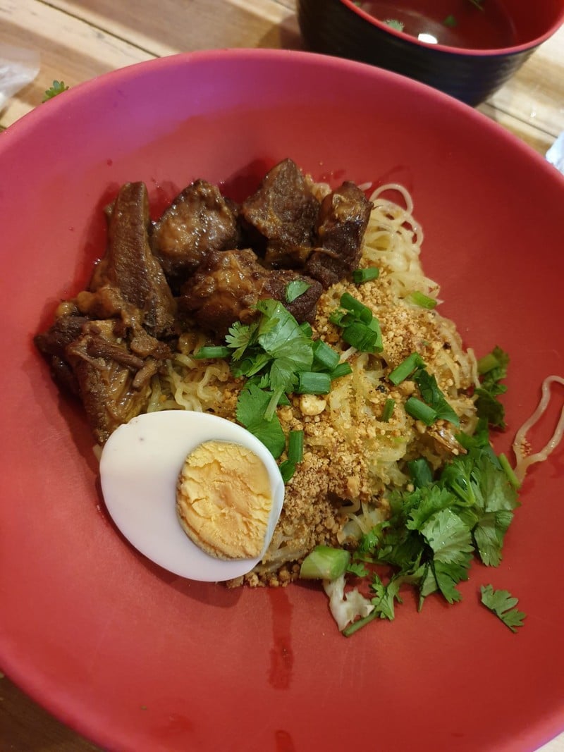 25% ของรีวิวบอกว่าร้านนี้เหมาะกับ ครอบครัวหรือเด็กก่อนอื่นต้องขอเป็นกำลังใจให้ทุกๆคน ผ่านช่วงเวลานี้ไปให้ได้นะครับ รีวิวแรกของการนอนอยู่บ้านเพื่อช่วยชาติ ^^ ร้านนี้เคยทานมานานละครับ ป้ายร้านยิ่งใหญ่ พร้อมรายการอาหารเห็นเด่นชัดมาแต่ไกล ชวนให้เข้าไปลิ้มลอง เลยแวะจอดรถข้างทาง เดินเข้าร้านมาแบบงงๆ บรรยากาศร้านเป็นตึกโล่งๆ พื้นสีแดง มีโต๊ะอยู่ไม่มาก แอร์เย็นๆ รู้สึกปลอดโปร่งดี เมนูหลัก แน่นอนคือ ก๋วยเตี๋ยวหมูตุ๋น-เนื้อตุ๋น ครับ บะหมี่แห้งเนื้อตุ๋น...อ่านต่อ