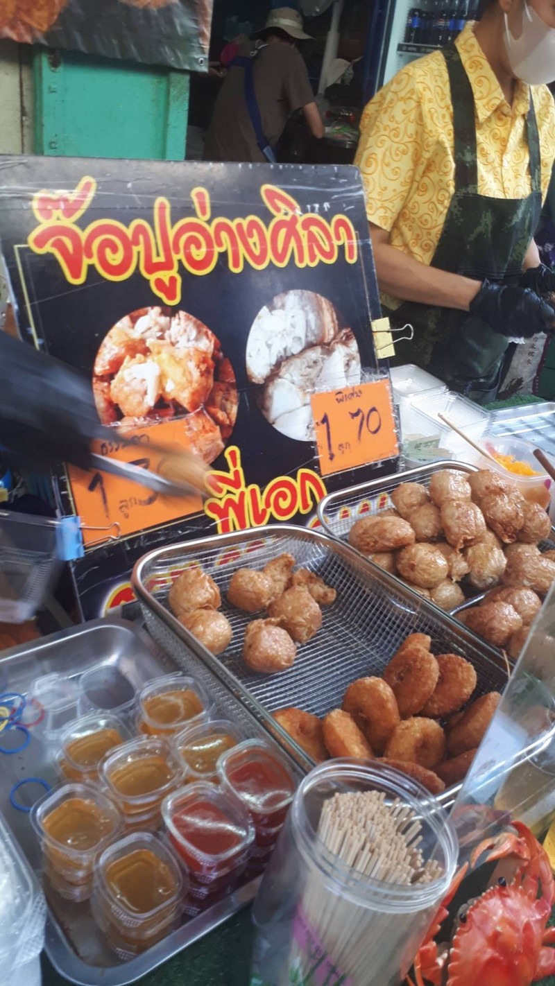 100% ของรีวิวบอกว่าร้านนี้เหมาะกับ เดลิเวอรีมาเดินตลาดตรอกหม้ออีกร้านที่น่าสนใจไม่ต้องไปไกลถึงอ่างศิลา ร้านขายฮ่อยจ๊อปูเนื้อปูล้วน แล้วมีโดนัทกุ้งร่วมด้วย ที่โดดเด่นคือฮ่อยจ๊อปูเพราะถามร้านแจ้งว่าไม่ใส่หมูก็ถูกใจคนไม่กินเลยด้วยราคาลูกไม่เล็กแถมได้ปูล้วนแกะมาไม่มีพวกแห้วหรือแป้งใส่แบบเจ้าอื่นถือว่าคุ้มค่ามากแป้งบางกรอบไส้ดี ร้านให้น้ำจิ้มบ๊วยมาด้วยแต่ไม่ใส่ก็รสดีอยู่แล้ว มีแบบพิเศษก็ลูกใหญ่แบบจัมโบ้ลูกละ70บาท หากใครสายนี้มาซื้อได้เลย #Tas...อ่านต่อ