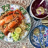 เราสั่งกลับบ้านค่ะ รอนานนิดหน่อยเพราะมีลูกค้าในร้าน ร้านตกแต่งสวย น่านั่ง ถ่ายรูปเก๋ๆ ได้ ผัดไทกุ้งสด (65.-) ผัดไทร้านนี้เป็นผัดไทสไตล์แฉะๆหน่อย แต่ไม่เละนะคะ เส้นไม่ถึงกับเหนียวนุ่มมาก แต่ได้อยู่ค่ะ ปรุงมารสชาติกลมกล่อม บีบมะนาวหน่อยนี่ดีเลย ร้านใส่พริกมาแล้วนะคะ แต่ไม่เผ็ด ใครชอบกินรสจัดปรุงเพิ่มได้เลย กุ้งได้มา 2 ตัว ตัวใหญ่อยู่ แกะเปลือกเรียบร้อย หัวกุ้งมีมันกุ้งด้วย สดอยู่ โดยรวมแล้วดีค่...อ่านต่อ