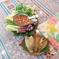 ร้านค่อนข้างเล็กมีโต๊ะไม่มาก เมืี่อก่อนเคยเป็นร้านอาหารเกาหลี ตบแต่งใหม่สีเขียวสดชื่นร้านน่ารักดูอบอุ่นดีค่ะ แต่ร้านปิดเร็วไปหน่อยนะคะ แต่คงเพราะเปิดกลางวันด้วยเมนูมีให้เลือกเยอะเน้นอาหารไทย,วันนี้เลยลองต้มยำกุ้งแม่น้ำแต่คงแม่น้ำใกล้ๆนี่แหละค่ะจากอยุธยาคงมาไม่ทัน รสชาติดีเปรี้ยวนำรสจัดจ้านดีกุ้งสดเนื้อแน่นตัวขนาดพอดีเหมาะสมกับราคา,กุ้งแพกรอบ กุ้งขนาดเล็กแต่ไม่ใช่กุ้งฝอยทอดมาทั้งเปลือกกรอบอร่อยม...อ่านต่อ