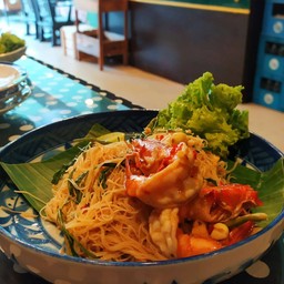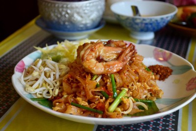 ร้านอยู่อยุธยา บรรยากาศดูย้อนยุค แต่ดูคลาสสิคดีนะ เมนูเป็นอาหารไทยเป็นหลัก แต่มีคนบอกให้มาลองผัดไทยดู เลยสั่งเกี๊ยวกรอบผัดไทย (60 บาท) ผัดมาแฉะกำลังดี หวานนำ แต่ปรุงได้ มีมะม่วงมาตัด ดีเลยนะ อีกจานเป็นผัดไทยกุ้งสด (65 บาท) กุ้งสดดี ใช้ได้ จริงๆมีกุ้งแม่น้ำด้วยนะ ต้องมาลองดูกันดูเพิ่มเติม
