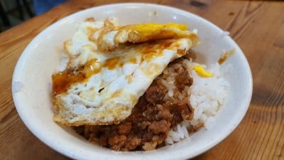 เป็นร้านอาหารไต้หวันที่ดังมาก ตั้งอยู่กลาง Ximending เลย อาหารราคาไม่แพง ผมมาทานเป็นอาหารเช้า อร่อยมาก ราคาอยู่ที่ 50-70 NT เท่านั้นเอง - ข้าวหน้าหมูสับไข่ดาว : จานนี้เสิร์ฟเป็นถ้วย ข้าวสวยหอมๆ โปะด้วยหมูสับกลิ่นพะโล้ รสชาติเค็มนิดๆ ปนหวาน มีมันปน โปะด้วยไข่ดาว ที่ไข่แดงไม่สุกมาก พอหั่นไข่ดาวออกไข่แดงก็เยิ้มไปที่หมูสับ รสชาติโดยรวมคืออร่อยมากกก ดีมากกก ให้ A - ซุปลูกชิ้น : จำไม่ได้ว่าสั่งลูกช...อ่านต่อ