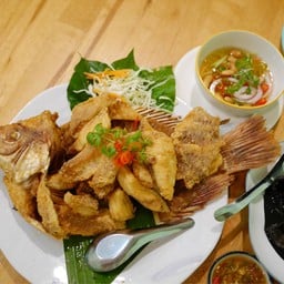 เค้าว่าเป็นร้านลับๆในหลืบ เราลงทางด่วนกาญ M81 มา ขับตาม google มาอีกไม่ไกล พอเช้าซอยมา เข้าใจละ ว่าทำไมซื้อนี้ มีที่จอดรถเป็นลานดิน อยู่เยื้องๆร้าน มีป้ายติดไว้ชัดเจน เห็นมีป้ายรับคนละครึ่งด้วยนะคะ เมนูที่สั่ง ปลาทับทิมทอดน้ำปลา 280฿ ยกมาเสริฟ์ ตัวใหฯ่กว่าที่คิด ปลาสดทอดมาใหม่ๆ ร้อนๆ ทอดมาแบบกรอบนอกนุ่มใน น้ำจิ้มซี้ฟู้ออร่อยดีค่ะ หมึกผัดน้ำดำ 180฿ ปลาหมึกสด รสชาติดี ผัดมานัวๆชอบนะเหมือนทานที่...อ่านต่อ