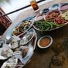 ทางเข้าร้านอาหาร ต้องขับเข้าไปถนนแคบๆ อาหารซีฟู๊ด รสชาติยังไม่เข้มข้นเท่าไร ร้านบรรยากาศดี ริมน้ำ ตอนไปยังไม่มีลูกค้า มีแต่โต๊ะเรา ร้านดูเงียบๆ ออส่วนหอยนางรม รสชาติอร่อย ราคาสมเหตุสมผล ไม่แพงเกิน น้ำพริกแมงดาอร่อยใช้ได้ดูเพิ่มเติม