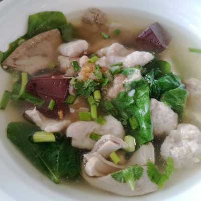 ตรงข้ามทางเข้าศาลจังหวัดเกาะสมุย มีร้านอาหารสวยใช้ได้ บรรยากาศดีเลย มีที่นั่งในร้านห้องแอร์ และด้านนอกชาน ให้เลือกนั่งตามสบาย ลูกค้ามีหมามาด้วยก็นั่งข้างนอกได้ น้องปอบสั่งไข่กะทะหน้ากะเพรา ฿60 เกาเหลาเลือดหมู ฿60 ข้าวถ้วยละ ฿15 ไข่กะทะหน้ากะเพรา เป็นผัดกะเพรากรอบใส่หมูและเครื่องแปลกๆ ทั้งข้าวโพด ถั่วลันเตา แครอท ผัดรสเข้มดี ราดไปบนไข่กะทะ อร่อยดีค่ะ เนื่องจากรสเข้ม-เค็ม จึงทานเป็นกับข้าวซะเลย...อ่านต่อ