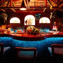 Ambient and relaxing bar counter with Arnaud Nazare-Aga's pop art pieces on it.