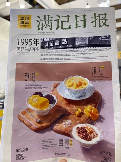 ฮันนีมูนดีเสิร์ต (Honeymoon Dessert / 满记甜品) เป็นแบรนด์ร้านของหวานสไตล์ฮ่องกงที่มีชื่อเสียง ก่อตั้งขึ้นในปี ค.ศ. 1995 จุดเด่นของแบรนด์คือของหวานตำรับดั้งเดิมของฮ่องกงผสานกับเมนูสร้างสรรค์ เมนูยอดนิยมได้แก่ สาคูมะม่วงส้มโอ แพนเค้กมะม่วง และนมตุ๋น โดยยึดแนวคิด “วัตถุดิบสดตามฤดูกาล หวานน้อย ดีต่อสุขภาพ” ผสานรสชาติคลาสสิกเข้ากับความทันสมัย จึงได้รับความนิยมจากผู้บริโภควัยรุ่นและนักท่องเที่ยวเป็นอย่างมาก